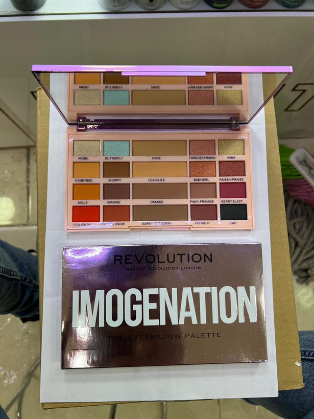 Imogenation پالت سایه چشم دارای 20 سایه چشم رنگدانه شده است. شامل 4 سایه خنثی و گرم ، بهعلاوه ترکیبی از رنگهای برنزی مات و متالیک، نارنجی، شرابی، صورتی و طلایی.